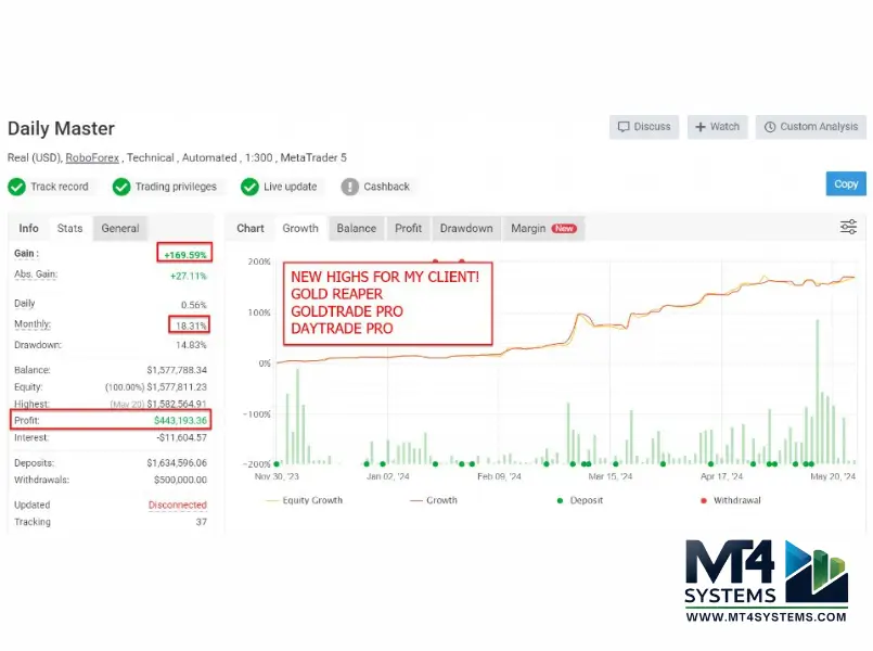 - Myfxbook: Verified accounts demonstrate substantial pips gained, reflecting the EA’s effectiveness in live trading environments.