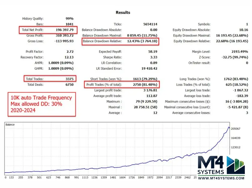 - Configuration: Adjust settings such as trade frequency, lot size, and risk parameters to suit your trading strategy.