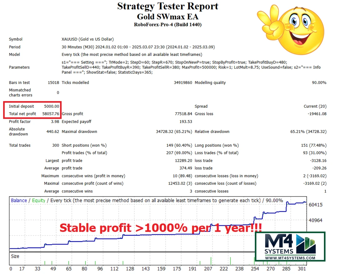 Gold SWmax EA MT4 is a cutting-edge Forex trading robot designed to automate trades on MetaTrader 4 with precision. Built for traders seeking passive income, this Expert Advisors (EA) leverages advanced algorithms to capitalize on market trends while minimizing risk. Whether you’re a beginner or an expert, Gold SWmax EA offers a hands-free trading solution with high-profit potential.