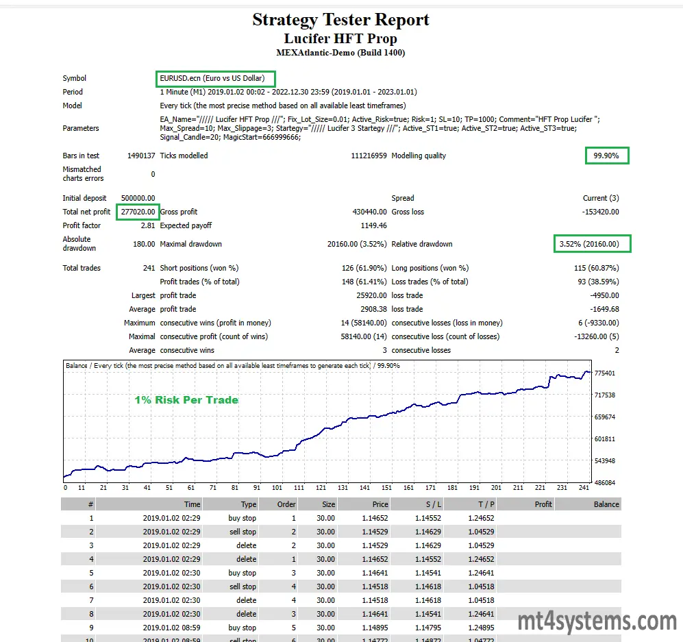 Lucifer HFT Prop EA Backtest Results (2019–2023)