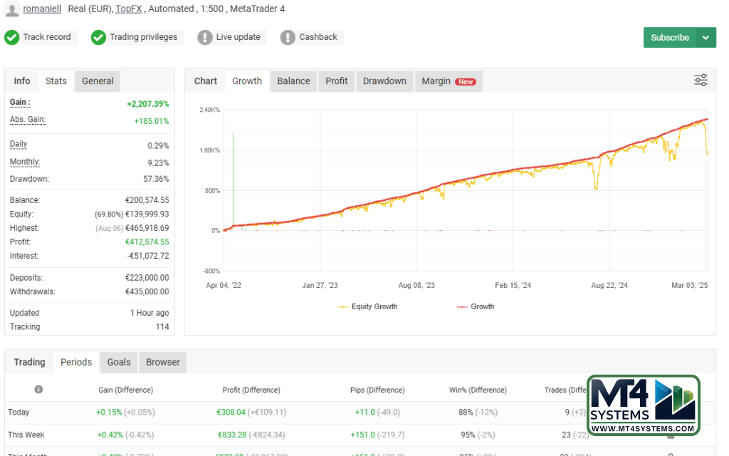 - Myfxbook: Verified trading results demonstrate steady growth with minimal drawdowns.