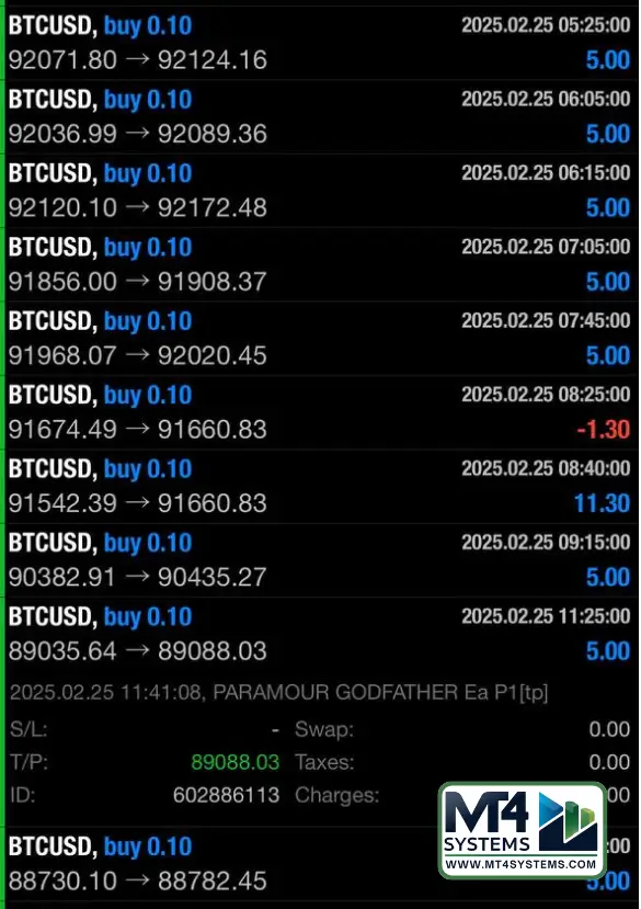 The Paramour Godfather EA Version P1 is a sophisticated tool for traders seeking to enhance their Forex trading performance. Its combination of advanced features, user-friendly setup, and proven results make it a valuable addition to any trading strategy. Visit our official website to purchase and start benefiting from automated trading excellence.