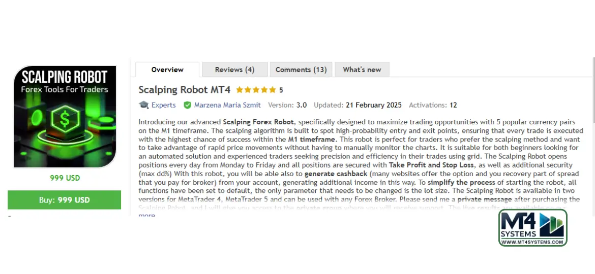 Scalping Robot MT4 V3.0 + V5.0 is available at an unbeatable price of $24.99 (limited-time offer). For secure payment and instant download, visit YourWebsite.com. Don’t miss out—buy now and start maximizing your Forex profits today!